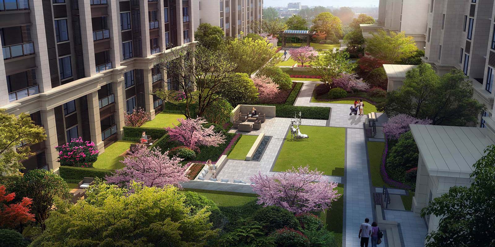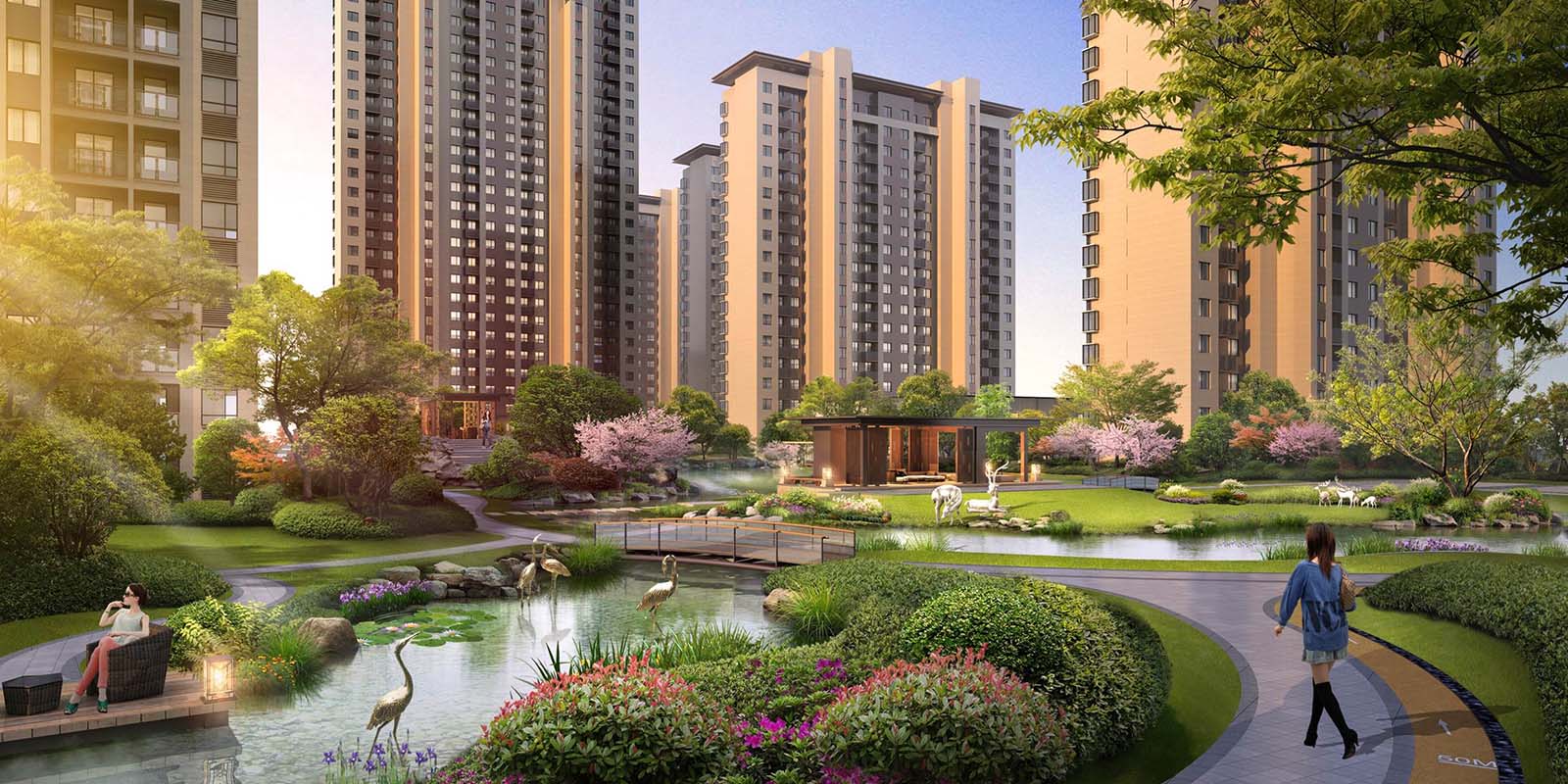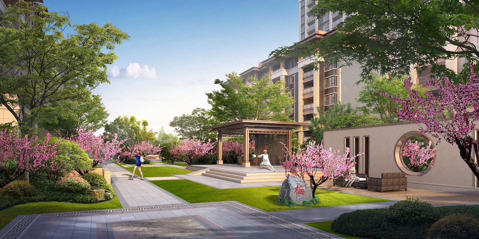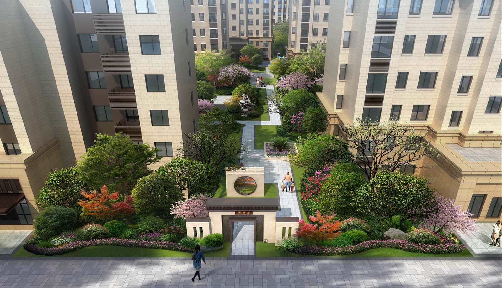 花園洋房區汲取江南園林坊巷精髓,采用五進三坊六巷的歸家秩序,“疏影橫斜水清淺,暗香浮動月黃昏。”坊巷花開,可緩歸矣。