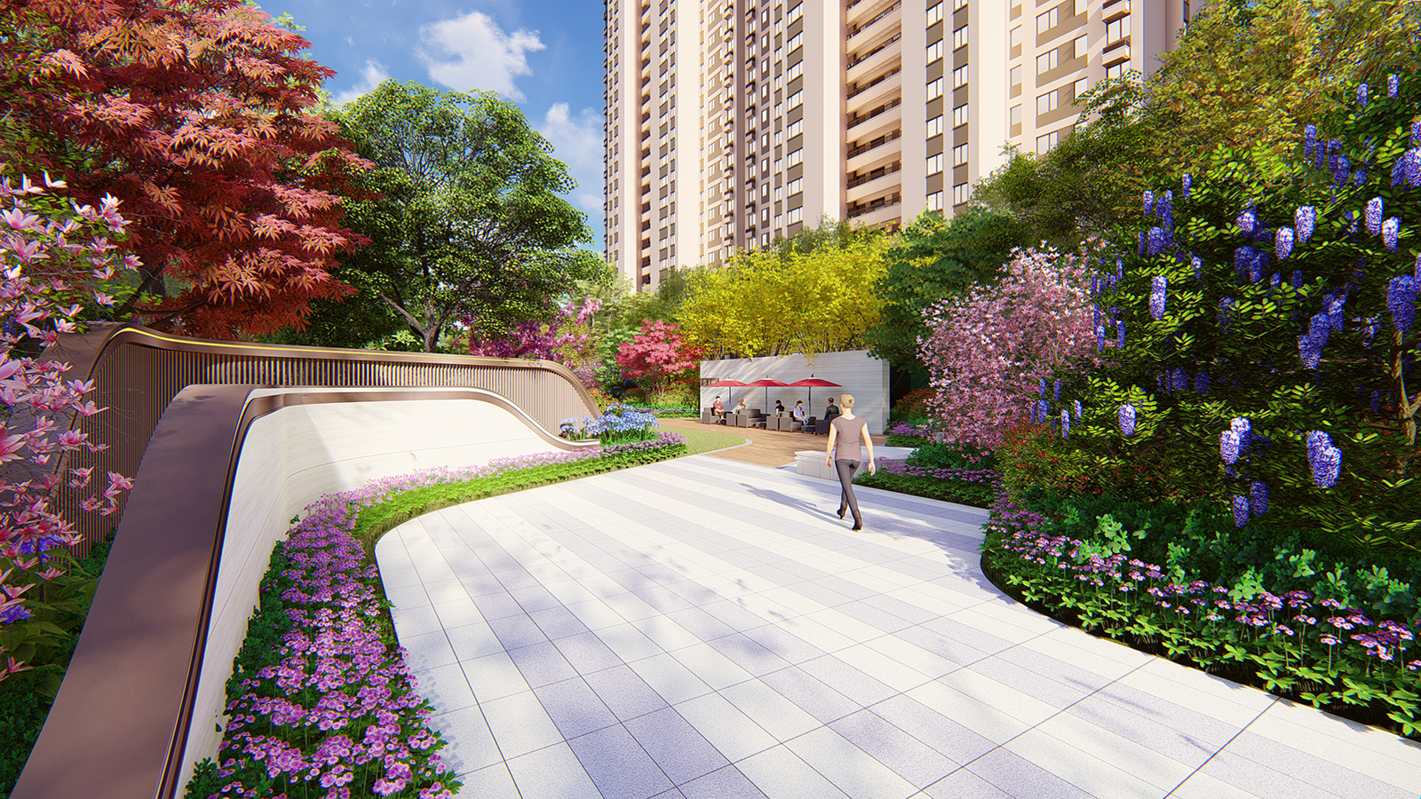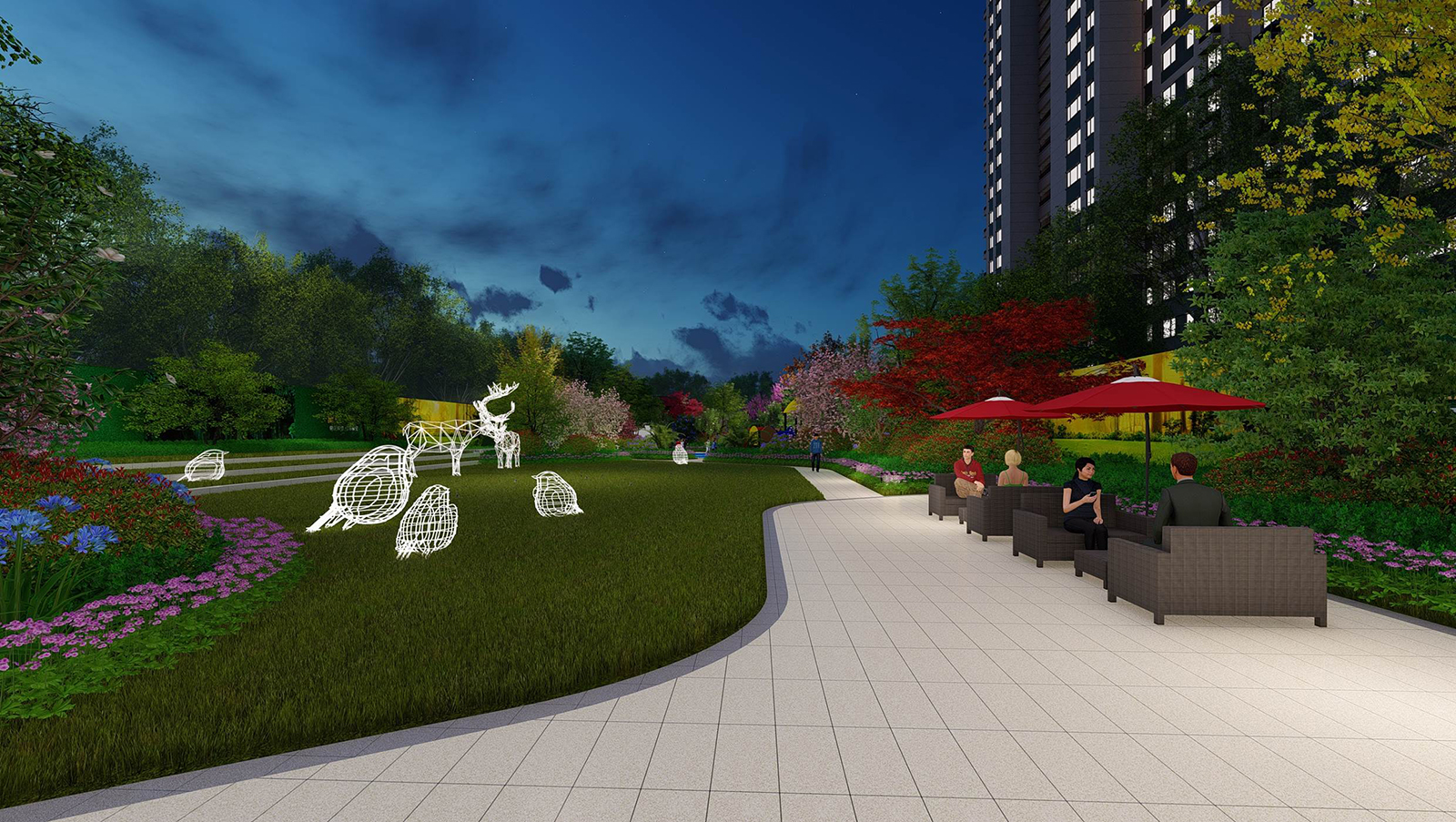 兒童樂園以親子同樂,喜鵲和鳴為意境,設置兒童體驗熱點,同時布置家長休閑看護區與洽談區,園路旁的喬木夾道種植,豐富的綠化層次,都能增強客戶對項目品質更加直觀的感受。