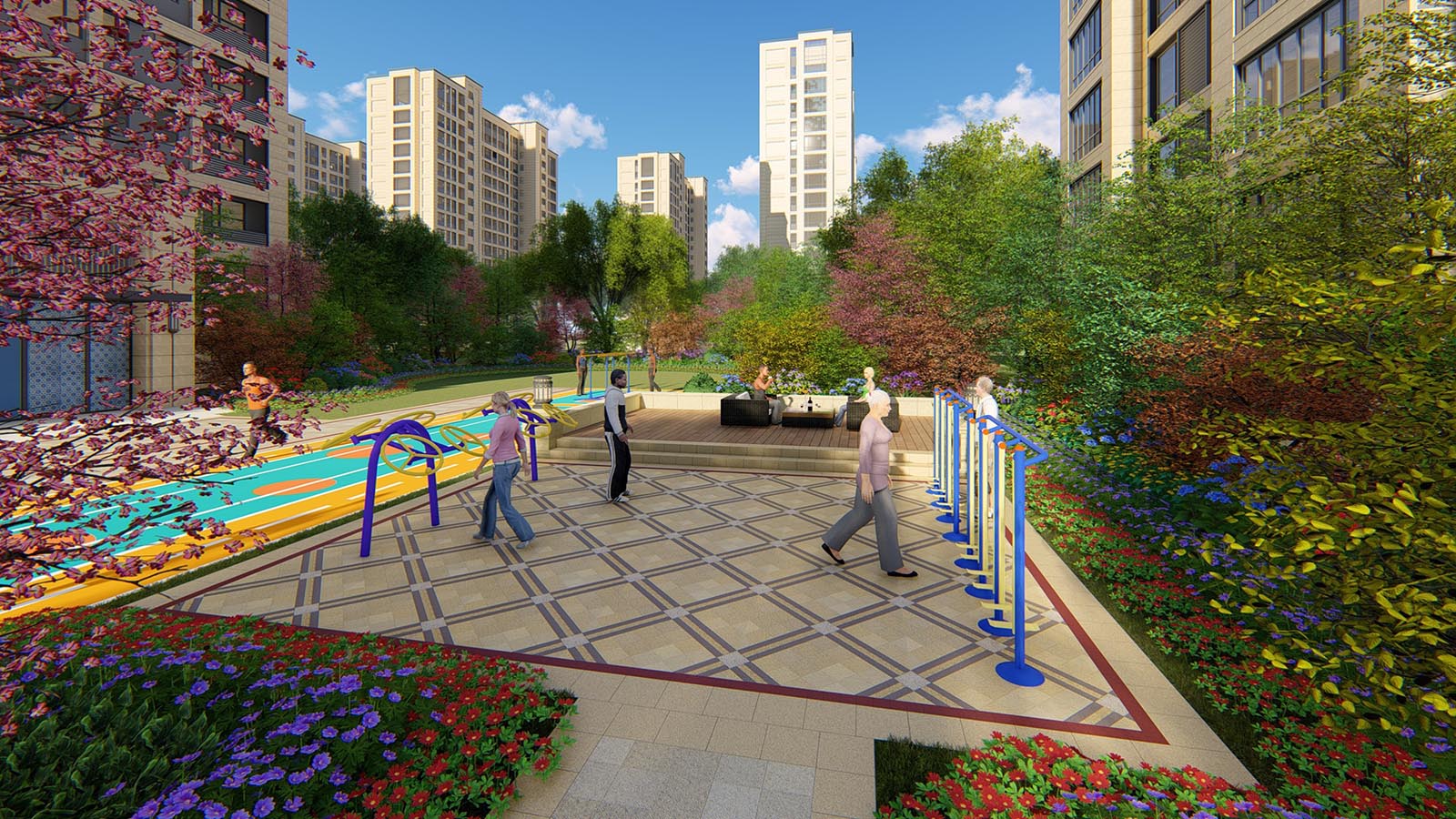 老人休閑組團包含太極健身區、棋牌娛樂區、靜養休閑區三大主題空間,區塊設置在最為安靜雅逸的地塊北區,太極健身區在太極健身廣場設計太極點位,方便老人展開太極運動,通過對于淄博當地生活習慣的深度調研,特別設計了棋牌娛樂空間,方便鄰里間在茶語飯后休閑時間,切磋棋牌游戲,將具有療養養生的性質的香花植物,開花喬木在區塊布置,提升老人的樂觀精神與生活活力,給老人創造一個極悠然、祥和、安寧的休憩、養生生活空間。