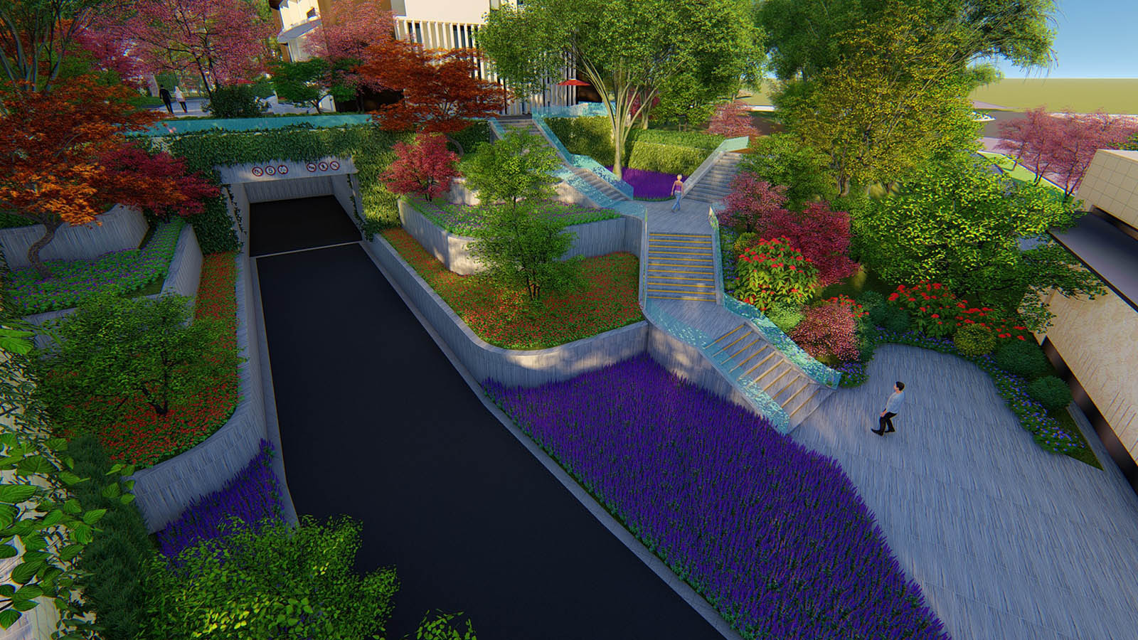 現代、動感、時尚的折線設計肌理重復與組合,強調消除折線的銳角,使景觀更具現代感,更具人性化及安全性能,以一種柔和自然的姿態表現新穎的居住區景觀環境。